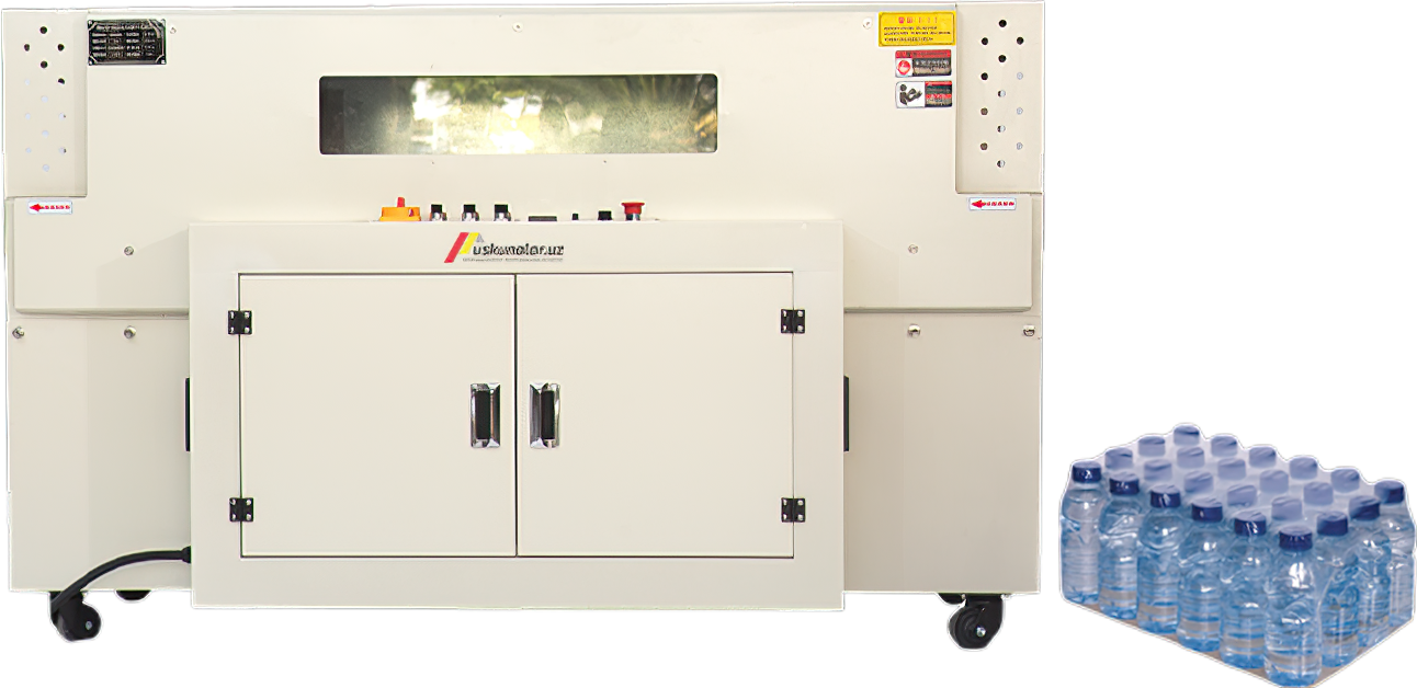 Uskuna PVC va POF plyonkalari bilan ishlaydi, mustahkam, silliq va estetik qadoqlash natijasini beradi.