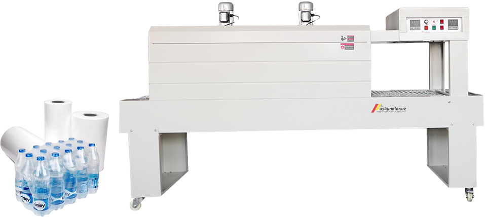 Uskuna PVC, POF va PE plenkalari bilan ishlashga mos bo‘lib, mahsulotni silliq, zich va estetik tarzda qadoqlaydi.