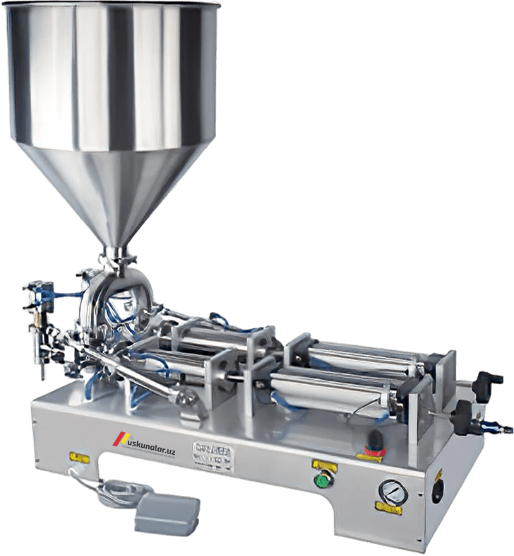 US-GS087 gorizontal to‘ldirish uskunasi, ya'ni dozator suyuq, yarim quyuq va quyuq mahsulotlarni aniq hajmda to‘ldirish uchun mo‘ljallangan.